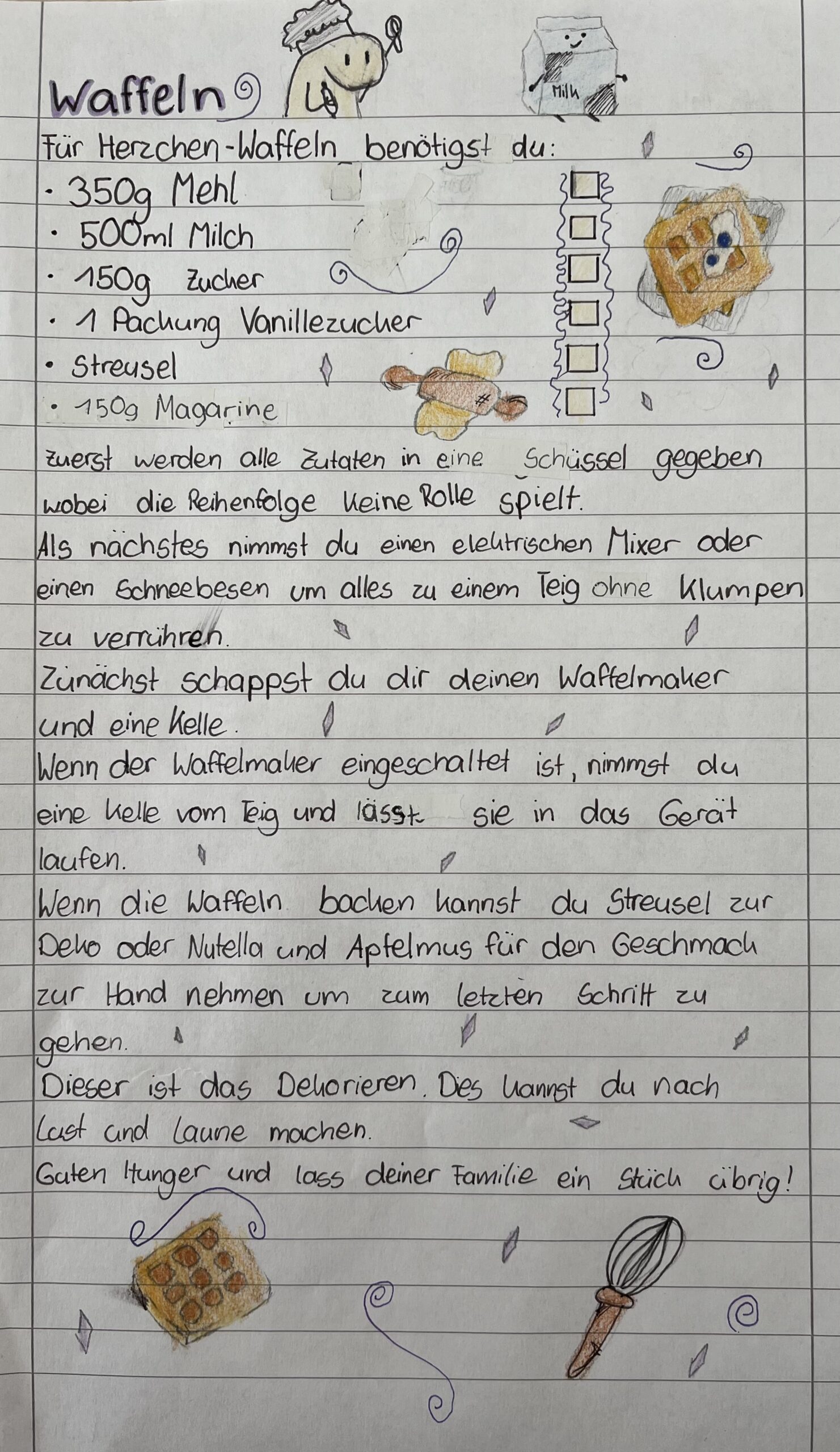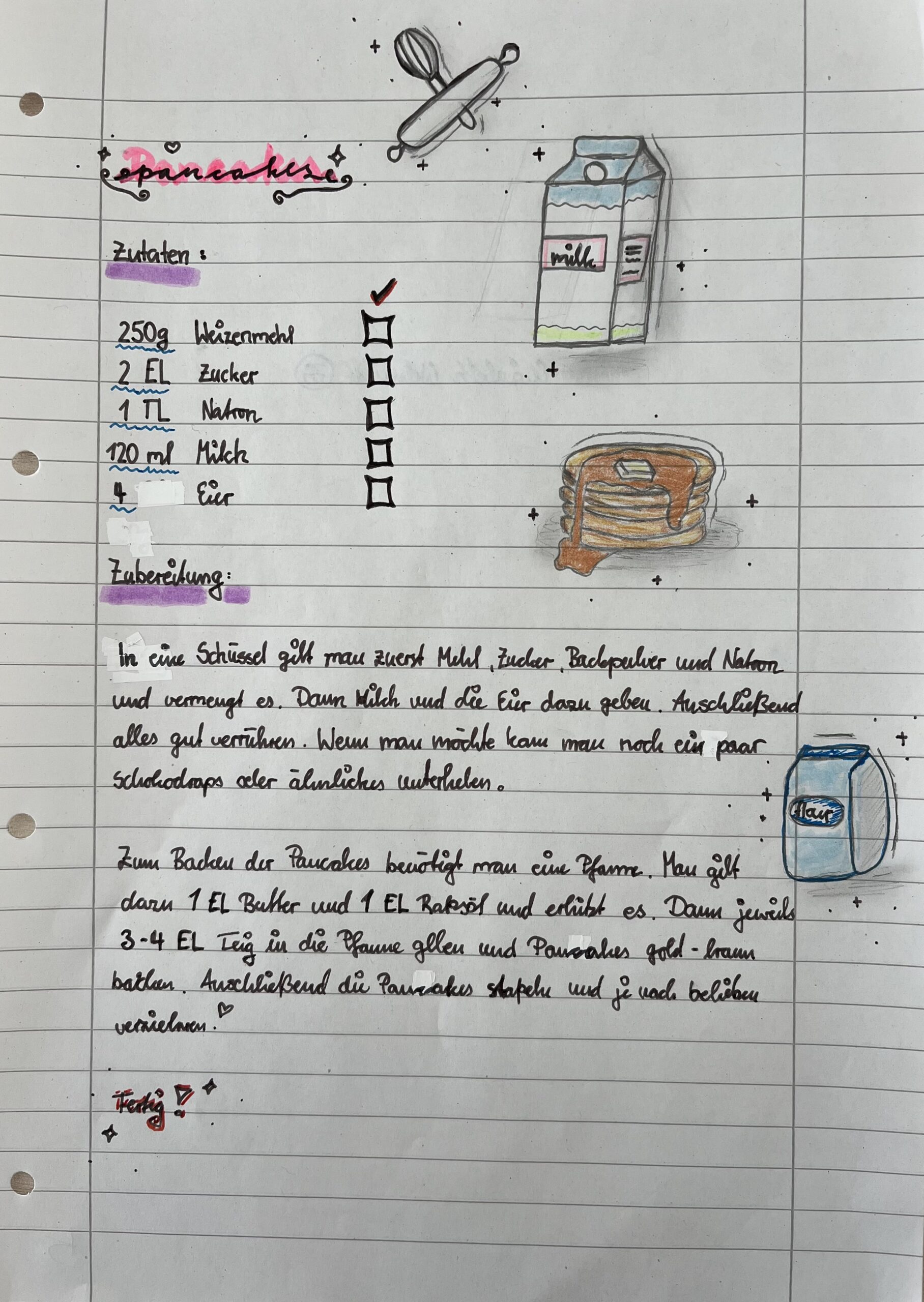 heute seid IHR mal dran! Die Klasse 7b, hat im Deutschunterricht bei Frau Seidl das Thema Vorgangsbeschreibung behandelt, dort haben sie für euch einfache Rezepte zum Nachmachen erstellt. Sagt uns doch gerne Bescheid, wie ihr die Rezepte fandet. Gerne könnt ihr ein Feedback auf Its Learning an Julia H., Milena S. schreiben.
